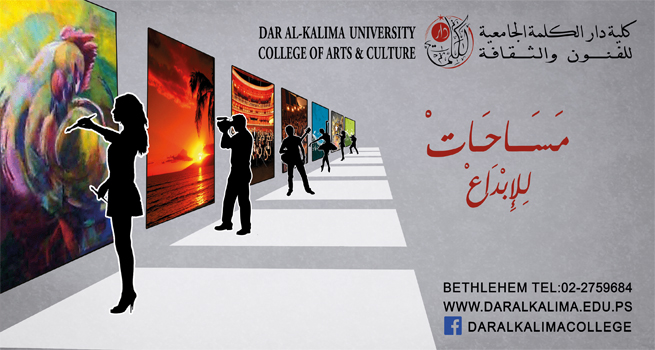 في مثل هذه الأيام من كل عام يتوافد الشباب والشابات لكلية دار الكلمة الجامعية للفنون والثقافة والواقعة في بيت لحم للإلتحاق بها، فهذه الشابة ترغب بدراسة بكالوريوس انتاج الأفلام، وذاك الشاب يرغب بدراسة بكالوريوس فنون معاصرة، وهؤلاء الشباب يرغبون بدراسة دبلوم الادلاء السياحيين الفلسطينيين واخرين يريدون دراسة الموسيقى والمسرح فلكلية دار الكلمة الجامعية فلسفة تعليمية شمولية ومميزة تعنى بالاحتياجات الفكرية والإبداعية والمهنية لدى الطلاب.