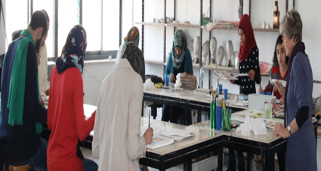 حيث التقت الفنانة بطلبة دائرة الفنون المرئية، واستهلت هذا اللقاء بالتحدث عن رحلتها الفنية وتطور أعمالها خلال السنين المختلفة، وأيضا تحدثت عن المعارض التي شاركت بها وعن خبراتها المميزة التي إكتسبتها من خلال انتاج الاعمال الفنية.