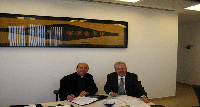 وقع رئيس كلية دار الكلمة الجامعية للفنون والثقافة في بيت لحم القس الدكتور متري الراهب، ونائب الرئيس للشؤون الأكاديمية في جامعة تكساس تك في الولايات المتحدة الأمريكية السيد آدم بالينغير، اتفاقية توأمة وتعاون مشترك بهدف تطوير برامج البكالوريوس في الأداء الموسيقي والفنون.