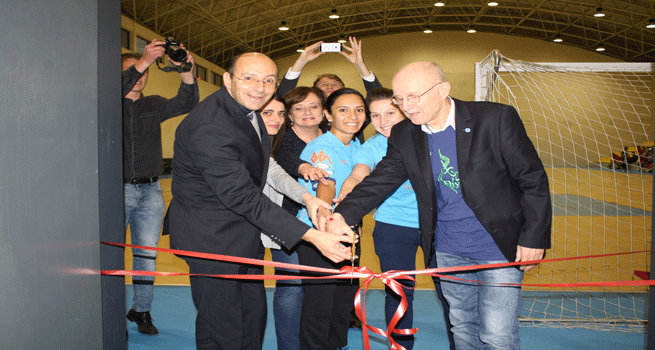 حيث افتتح حفل التدشين القس الدكتور متري الراهب رئيس مجموعة ديار ورئيس كلية دار الكلمة الجامعية للفنون والثقافة، بكلمة رحب خلالها بالحضور وبالأخص بداعمي المشروع وهم مكتب الأمم المتحدة للرياضة والتنمية والسلام جنيف، سويسرا ((UNOSDP، وأكد على أهمية مثل هذه المرافق سواء كان ذلك للاعبات فريق ديار النسوي وطلبة أكاديمية ديار للأطفال والشباب، وطلبة كلية دار الكلمة الجامعية للفنون والثقافة وطلبة مدرسة دار الكلمة، بالاضافة الى أهمية هذه المرافق لاستضافة دوري كرة اليد والسلة والطائرة والتنس الأرضي وكرة القدم الخماسية، مضيفاً: "نفتخر بهذا الانجاز وبالعلاقة التي تربطنا بمكتب الامم المتحدة للرياضة والتنمية والسلام".