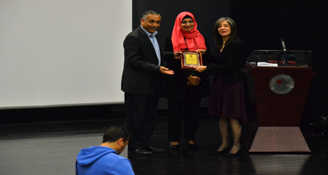 وفي نهاية الورشة قدمت مديرية التربية والتعليم في محافظة بيت لحم درعا تكريميا بمناسبة حصول القس الدكتور متري الراهب رئيس دار الكلمة الجامعية على جائزة الوف بالميه العالمية.