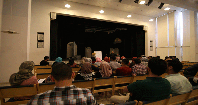 وأشارت السيدة ميساء العزة "أن التعلم عن طريق الموسيقى طريقة جديدة للتعلم كمثل كانت هناك قصة عن قدرة الطفل أن يستحم بنقطة ماء واستخدمت الموسيقى لتساعد الأطفال على التفاعل والتخيل و التعبير بالحركات الجسدية حيث يساعدهم على تنشيط الذاكرة وأيضا يساعد على تقوية العضلات لدى الأطفال، وكان نشاط سرد القصة "ليلى الحمراء" عن طريق تحريك الدمى، ورواية قصة أخرى استخدمت فيها تقليد أصوات الحيوانات و بعض الحركات ليتم تفاعل الأطفال مع القصة وهذا يساعدهم على تركيز البصري والعقلي للأطفال ذوي الاعاقة".