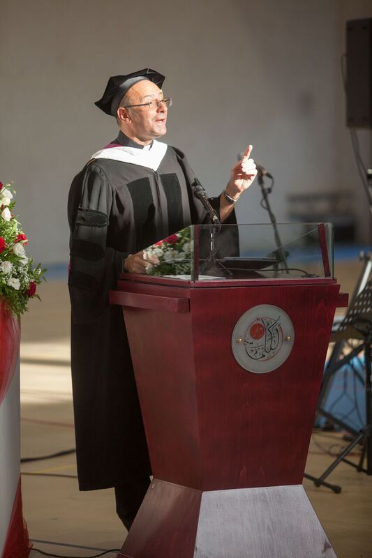 وفي اختتام كلمته شكر كل من أعضاء الهيئتين الاكاديمية والادارية، على عملهم الدؤوب في تجسيد رسالة هذه الكلية الجامعية، وشكر رئيس واعضاء مجلس الأمناء على دعمهم المستمر، وشكر الطلاب والاهل اللذين آمنوا بفلسفة هذه المؤسسة، وذكر: "أن أولاً وأخيراً الشكر لله الذي منه وبه وله كل الاشياء... له وحده المجد... ولكم أيها الخريجون... لكم النجاح والتوفيق... مبروك ألف مبروك".