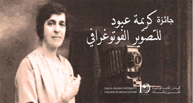 وضعت دار الكلمة الجامعية للفنون والثقافة في مدينة بيت لحم، وكجزء من فعاليات الاحتفال بمرور عشرة أعوام على تأسيسها، اللمسات النهائية استعداداً لحفل تسليم جائزة المصورة كريمة عبود للتصوير الفوتوغرافي لعام 2016، وذلك تكريماً للفنانة الراحلة كريمة عبود، ومن أجل تشجيع مهارات المصورات الشابات والمصورين الشباب في فلسطين والمهجر ودعم مسيرتهم الإبداعية والتعبيرية.