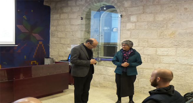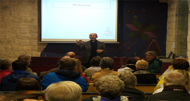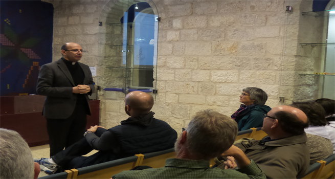 ومن ثم استمع الوفد الى محاضرة قدمها القس الدكتور متري الراهب أطلعهم خلالها على الوضع السياسي الراهن والمستوطنات التي تهدد مدينة بيت لحم، كما وتم إفساح المجال للوفد للمداخلة، وحث الدكتور الراهب الوفد على أهمية تغيير السياسية الأمريكية خاصة بعد حصول دونالد ترامب على الرئاسة الأمريكية.