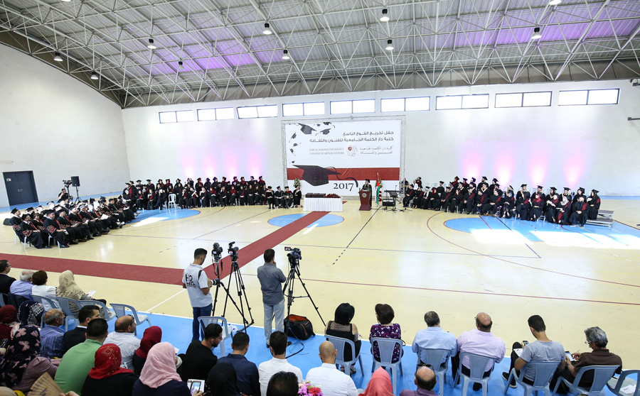 وقد بدأت فعاليات الحفل بدخول الخريجين من مختلف التخصصات في موكب مهيب، يتقدمهم موكب رئاسة دار الكلمة الجامعية، ووزير الثقافة الفلسطيني ومجلس أمناء الكلية الجامعية وموكب الهيئتين الإدارية والأكاديمية، وسط تصفيق كثيف وحار من الحضور الذين كانت تغمرهم سعادة عارمة.