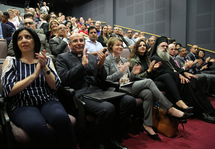 وتابع الدكتور الراهب كلمته قائلاً: "لقد إخترنا لهذا الفيلم عنوان "الرقص على الزجاج"، إذ لم يكن من السهل على صحفي فلسطيني آمن بالعروبة بكل جوارحه، أن يمسك بزمام دفة صحفه ومجلاته في وسط عالم عربي مضطرب راحت تضرب به الخلافات السياسية من كل حدب وصوب، وهنا أوجه شكري للزميلة محاسن ناصر الدين التي أخرجت هذا الفيلم رغم قصر الوقت المعطى لها".