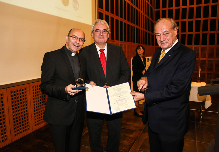 وقد حصل القس الدكتور متري الراهب هذه الجائزة مع الخبير الاقتصادي الإسرائيلي أفيشاي برافرمان والإمام الإسلامي الليبرالي ربيعة مولر، حيث ان هذه المرة العشرين التي تمنح فيها هذه الجائزة ومن بين الذين حصلوا عليها الامير الحسن والكردينال كونغ من النمسا وغيرهم من الشخصيات المهمة.