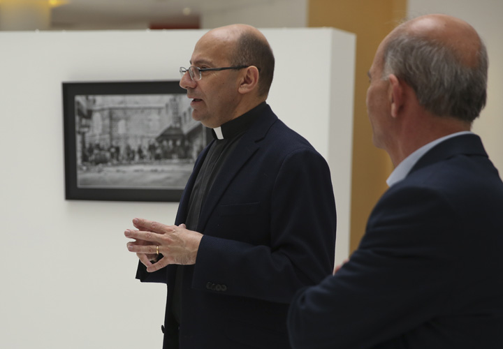 وافتتح المعرض القس الدكتور متري الراهب رئيس دار الكلمة الجامعية بكلمة رحب خلالها بالحضور، وأكد: "تأتي أهمية هذا المعرض كونه يقام بالشراكة مع مؤسسة عريقة بحجم متحف ياسر عرفات، وكونه يوثق الانتفاضة الاولى حيث امتزجت المقاومة السلمية ذي القاعدة الشعبية العريضة بالامل وبالتحرر وشكلت نقلة نوعية في الوهي العالمي بعدالة القضية الفلسطينية، كما وتشكل الصور التي التقطتها عدسة الفنان نافذة الى قلب الرواية الفلسطينية التي عمدت بالنار والحجر".