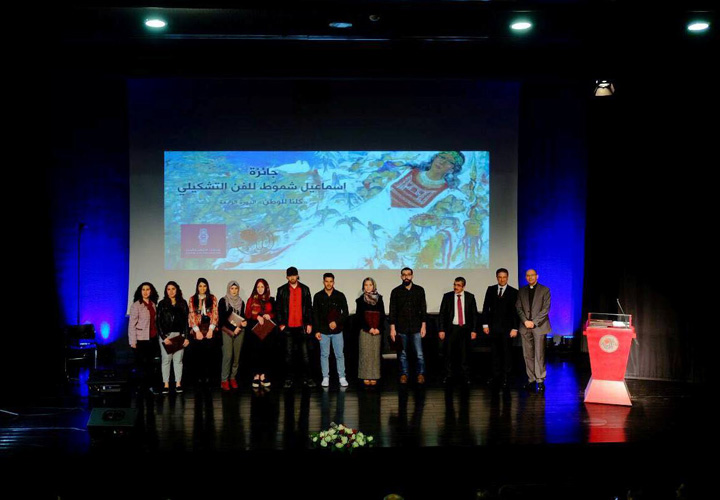 بأجواء شبابية معبرة، وبلوحات فنية تغمرها الجمالية والابداع الفني، وتحت شعار "كلنا للوطن"، وبرعاية رئيسية من بنك فلسطين، دار الكلمة الجامعية للفنون والثقافة تحتفل بتسليم جوائز مسابقة الفنان اسماعيل شموط للفن التشكيلي لعام 2018، وذلك على مسرح دار الكلمة الجامعية.
