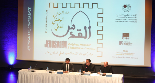 افتتحت دار الكلمة الجامعية للفنون والثقافة في مدينة بيت لحم، وبحضور وزير التربية والتعليم العالي الدكتور صبري صيدم وبمشاركة نخبة من الشخصيات العربية والعالمية من أكاديميين وعلماء اجتماعيين وانثروبولوجيين مؤتمرها  الدولي السادس عشر بعنوان "القدس: البعد الوطني، الديني والدولي"، وذلك في رواق دار الكلمة الجامعية.