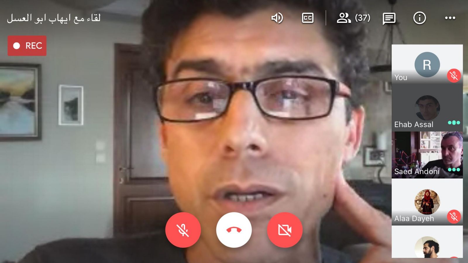 هذا وقال سائد انضوني: "لقد كنا نعمل هذه اللقاءات باستمرار خلال فترات الدوام الطبيعي والان مع فترة الحجر هذا اللقاء الثاني الذي نقوم به، اود ان اشكر المصور السينمائي ايهاب ابو العسل الذي كان كريما مع الطلبة واستفساراتهم وحاول تقديم المشورة لما فيه افادة للطلبة ".