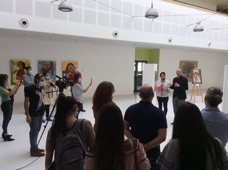 كما وألقت السيدة غادة الأعرج منسقة جائزة الفنان اسماعيل شمّوط للفن التشكيلي لعام 2020 شرحاً عن المسابقة وعن المعرض، كما وقامت بعمل جولة في المعرض واستعرضت الأعمال الفنية التي تم اختيارها من قبل لجنة التقييم الأولى المكونة من كل من: محمد الحواجري، منال محاميد وجوني اندونيا
