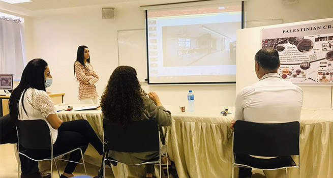 وقد تم تقسيم خريجي برنامج بكالوريوس التصميم الداخلي الى مجموعات، حيث قدم كل من : قصي الحروب مشروع بعنوان " DANTEL Fashion House"، عائشة قراقع مشروع بعنوان " مركز مجتمعي ترفيهي"، رزان الدراس مشروع بعنوان " Second Life (معرض للمواد معادة التدوير)، شيماء صبيح مشروع بعنوان " تطوير سوق الحرف - برك سليمان"، اسلام صلاح و عدي القواسمي مشروع بعنوان " KARMEH Hotel- old city of Hebron"، جيانا الشوملي مشروع بعنوان " أكاديمية و معرض فنون Art Is Freedom"، لانا فضول مشروع بعنوان " مركز توجيه الطفوله"، هدى عبد النبي و داليا شخطور " Bethlehem Taxi terminal"، بنان مرار " جمعية حماية الاسرة - البيت الامن"، حسام الدين الكركي مشروع بعنان " مركز مجتمعي تعليمي (شبابي)"، رولا رومي مشروع بعنوان " محكى بيت لحم - تطوير مبنى مركز السلام"، دانا يعقوب مشروع بعنوان " Art Center"، مشلين مرقص مشروع بعنوان " Art & Creativity House"، مرام البلاصي مشروع بعنوان " تطوير قرية SOS بيت لحم"، مالك عيسى مشروع بعنوان " مركز ثقافي مجتمعي / البلدة القديمة في الخليل".