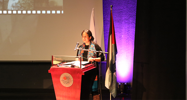 كما وألقت السيدة غادة الأعرج منسقة الجائزة كلمتها، ذكرت فيها: "جاءت جائزة كريمة عبود للعام 2021 بعنوان "أرشيف صمود" لتوثق قصص صمود فلسطينية بمشاركة 48 مصور ومصورة، شكلت بمجملها الارشيف الفعلي، ولم نكن نسعى بالمطلق لتوثيق الاحداث غير الاعتيادية، فتلك تأخذ نصيبها في الصحافة المحلية والعالمية وعلى منصات التواصل الاجتماعي بل كنا نسعى لنرى كل ما اصبح جزءا لا يتجزأ من وجودنا الجماعي فكل منا كفلسطيني حكاية صمود قائمة مع اختلاف المكان والزمان والاحداث".