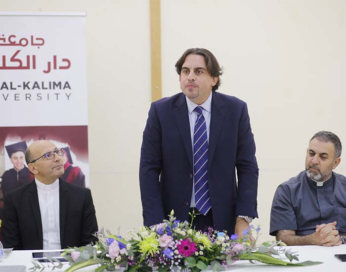 وقد افتتح حفل اطلاق الكتاب القس البروفيسور متري الراهب مؤسس ورئيس جامعة دار الكلمة بكلمة رحب خلالها بالمؤلف خافيير أبوعيد وبالحضور، وقدم الكتاب، قائلاً: " يسر جامعة دار الكلمة ان تطلق هذا الكتاب للباحث خافيير أبو عيد والذي يسلط الضوء على دور المسيحيين الفلسطينيين في عهد الانتداب البريطاني كجزء اصيل من النسيج العربي الفلسطيني ومن الحراك ضد الاستعمار البريطاني كما والاستعمار الاحلالي الصهيوني".
