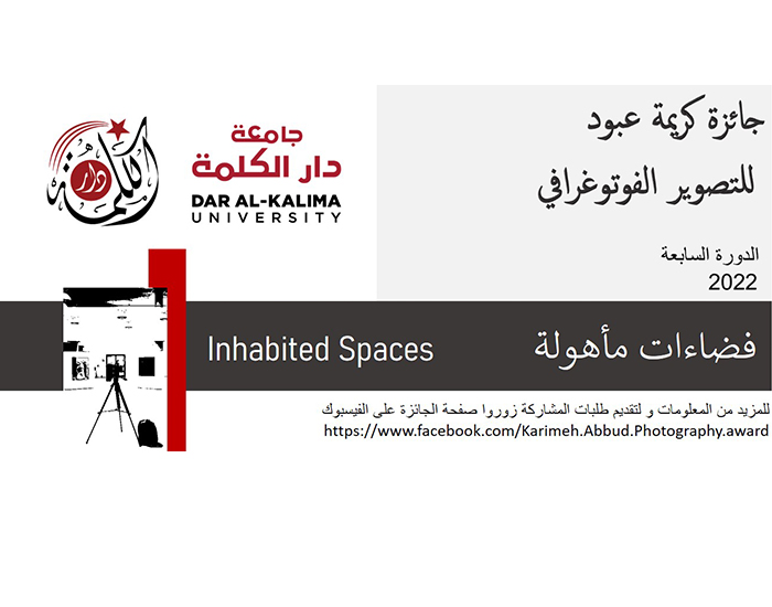 أطلقت جامعة دار الكلمة في مدينة بيت لحم وللسنة السابعة على التوالي، مسابقة جائزة كريمة عبود للتصوير الفوتوغرافي لعام 2022، والتي تهدف الى تشجيع مهارات المصورات الشابات والمصورين الشباب في فلسطين ودعم مسيرتهم الإبداعية والتعبيرية.