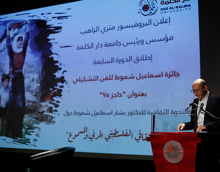 أطلق  القس البروفيسور متري الراهب مؤسس ورئيس جامعة دار الكلمة الدورة السابعة من جائزة اسماعيل شموط للفن التشكيلي بعنوان "حاجز ٧٥"، وذلك خلال حفل اقيم في جامعة دار الكلمة وبحضور نخبة من الشخصيات الاعتبارية العامة رفيعة المستوى، والى جانب عدد من الشخصيات الفنية والاجتماعية والسياسية.