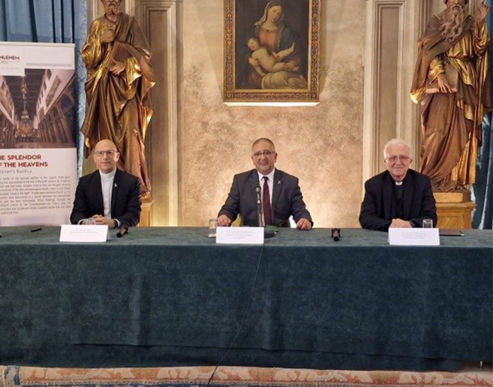 بدأ سعادة السفير عيسى قسيسية سفير فلسطين لدى الفاتيكان كلمته بالترحيب بالحاكم العام لفرسان القبر المقدس ليوناردو فيسكونتي وبممثلي الكرسي الرسولي من رؤساء اساقفة والسفراء والقناصل وممثلي الكنائس من اساقفة ورهبان والشخصيات العامة والمؤسسات الكاثوليكية التي تعمل في الأراضي المقدسة. وعبر السفير قسيسية عن اهمية هذا النوع من المحاضرات والندوات للتعريف بالواقع الفلسطيني، ودور الكنيسة في التنمية المستدامة في فلسطين. كما وأكد سعادته على الدورالفعال الذي تقوم فيه اللجنة الرئاسية العليا لشؤون الكنائس في تعزيز حضور الكنيسة والحفاظ على النسيج المجتمعي. وذكر سعادته أيضاً أن فلسطين تميزت في دورها من خلال المرسوم الرئاسي الذي اصدره فخامة الرئيس محمود عباس لتشكيل اللجنة الرئاسية، مما اسهم بشكل فعال في تثبيت وصمود الكنيسة المحلية وتعزيز حضورها. وثمن موقف الكرسي الرسولي بدعم القضية الفلسطينية والاعتراف بدولة فلسطين على حدود ال67.
