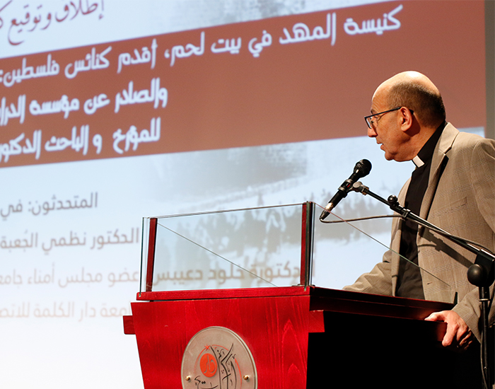 وقد أكد المهندس زياد البندك رئيس اللجنة الرئاسية لأعمال ترميم كنسية المهد خلال مداخلته في الندوة الثقافية الى نجاح اللجنة الرئاسية بالحفاظ على موقع كنيسة المهد بالرغم من المشاكل التي تعرضت لها كنيسة المهد، حيث تم الحفاظ على الكنسية من خلال ترميمها وتعاون الكنائس مع بعضها البعض، وقد تم الوصول الى نقطة أن الشعب الفلسطيني مارس سيادته، وكان شرف أن توقف مديرة اليونسكو والطلب ان يتم تحويل مدينة بيت لحم من قائمة الخطر الى قائمة التراث لانه ما قامت به دولة فلسطين يعتبر المثال الحسن".