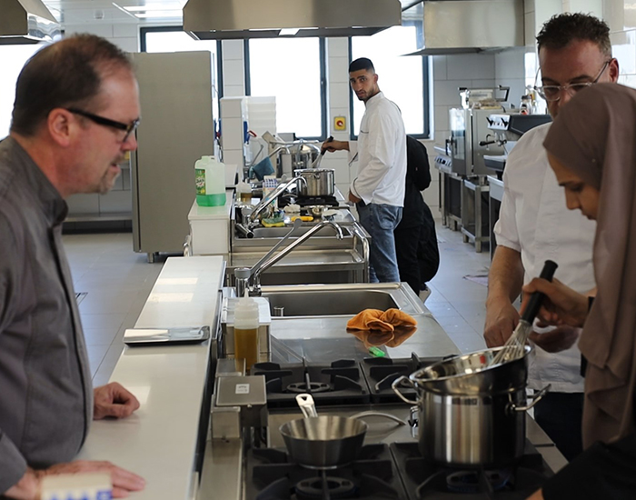 كما وقدم للطلبة ثلاثة ورشات عمل تضمنت كيفية عرض أطباق فلسطينية امام السائح وأهم المهارات التي يجب أن يتمتعوا بها الطلبة لنجاح تقديم دروس في فن الطهي الفلسطيني، كما وقام الشيف بالمشاركة في إحدى المسارات الغذائية التي طورها الطلبة في محافظة بيت لحم وهو مسار مخيم الدهيشة، وتم تسليط الضوء خلال المسار على اهم الأطباق التي انتقلت مع اللاجئ الفلسطيني من بلده الأصلي إلى المخيم وحافظ عليها.