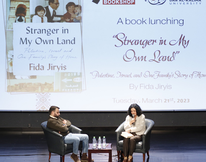 عقدت جامعة دار الكلمة والمكتبة العلمية في مدينة بيت لحم وضمن سلسة ندوات صالون جبرا ابراهيم جبرا الثقافي ندوة إشهار وتوقيع أحدث إصدارات الكاتبة فدى جريس كتاب بعنوان"غريب في وطني: فلسطين وإسرائيل وقصة إحدى العائلات عن الوطن"، والصادر عن منشورات هيرست.