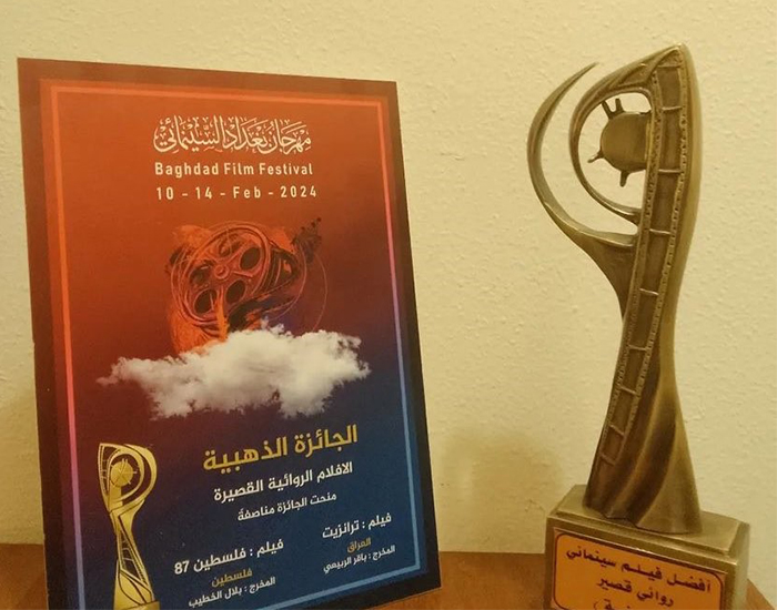 فيلم "فلسطين 87" للمخرج بلال الخطيب يحصل على الجائزة الذهبية في مهرجان بغداد السينمائي