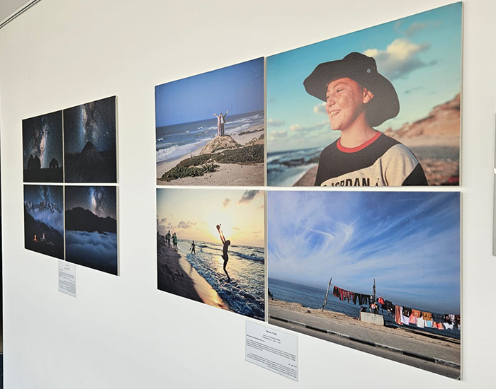 ما زالت صور محمد الريفي الفائز بالمركز الأول في جائزة كريمة عبود للتصوير الفوتوغرافي تزين جدران جامعة دار الكلمة في بيت لحم منذ عام ٢٠٢٢ وستظل مرآة لأحلام الشباب في غزة.