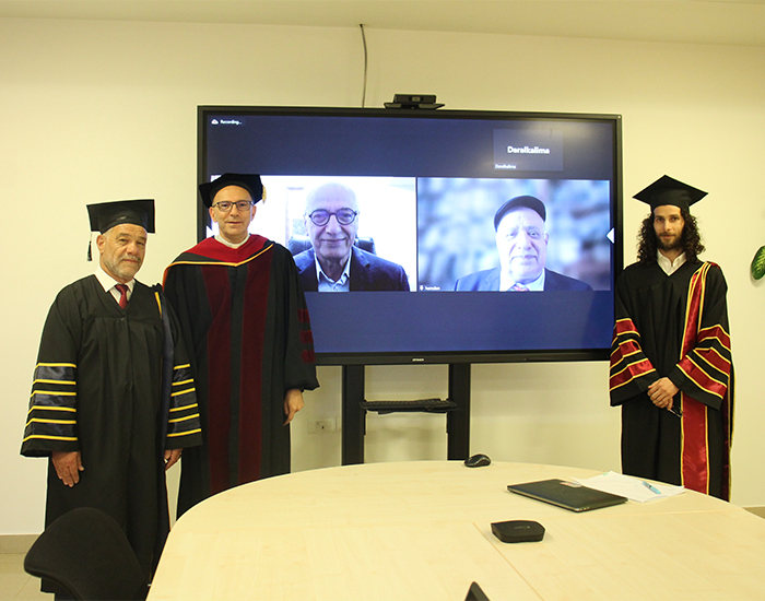حيث تكونت لجنة المناقشة من عضوية كل من: الدكتور محمد شاهين رئيساً، والدكتور حمدان طه من جامعة دار الكلمه ممتحناً داخلياً، والدكتور محمد هلسة من جامعة الاستقلال ممتحناً خارجياً.