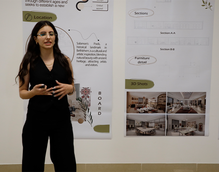 نظمت كلية الهندسة والتصميم في جامعة دار الكلمة في مدينة بيت لحم، فعاليات تقييم مشاريع تخرج طلبة برنامج بكالوريوس التصميم الداخلي، حيث أشرف على تنظيم الفعاليات المهندسة ليزا معلم منسقة برنامج التصميم الداخلي في الجامعة، وأعضاء من الهيئة الأكاديمية في الجامعة، وهم: المهندسة ديما أبو نعمة، المهندسة ديما الشاعر، المهندسة اناماريا سكافي.