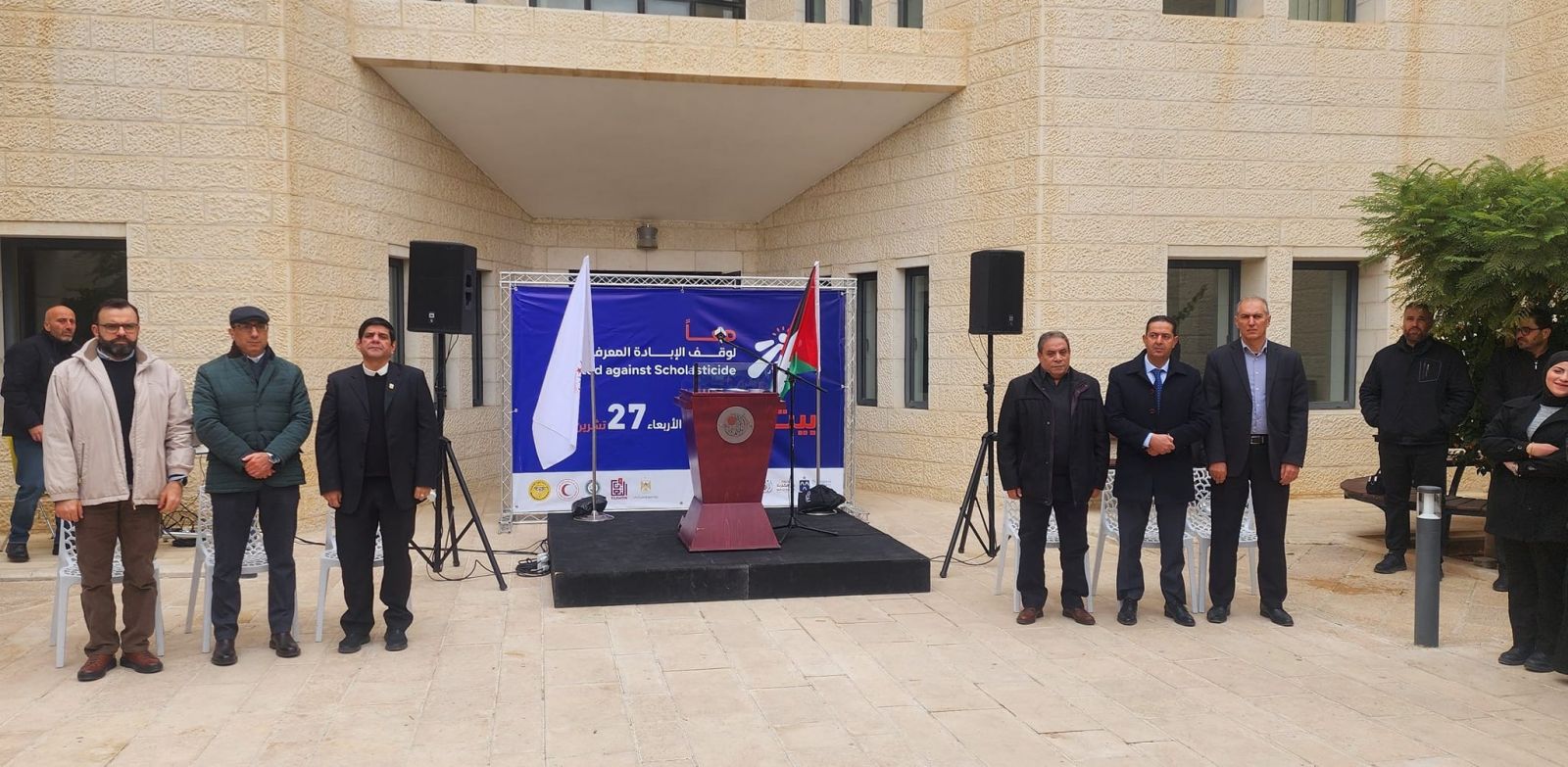وأكد المتحدثون على أحقية الشعب الفلسطيني في التعليم والتنقل والوصول الى مقاعد الدراسة والعيش بحرية وكرامة، منددين بالإبادة الجماعية التي تقوم بها إسرائيل في قطاع غزة وبالتحديد منذ السابع من تشرين الأول 2023.