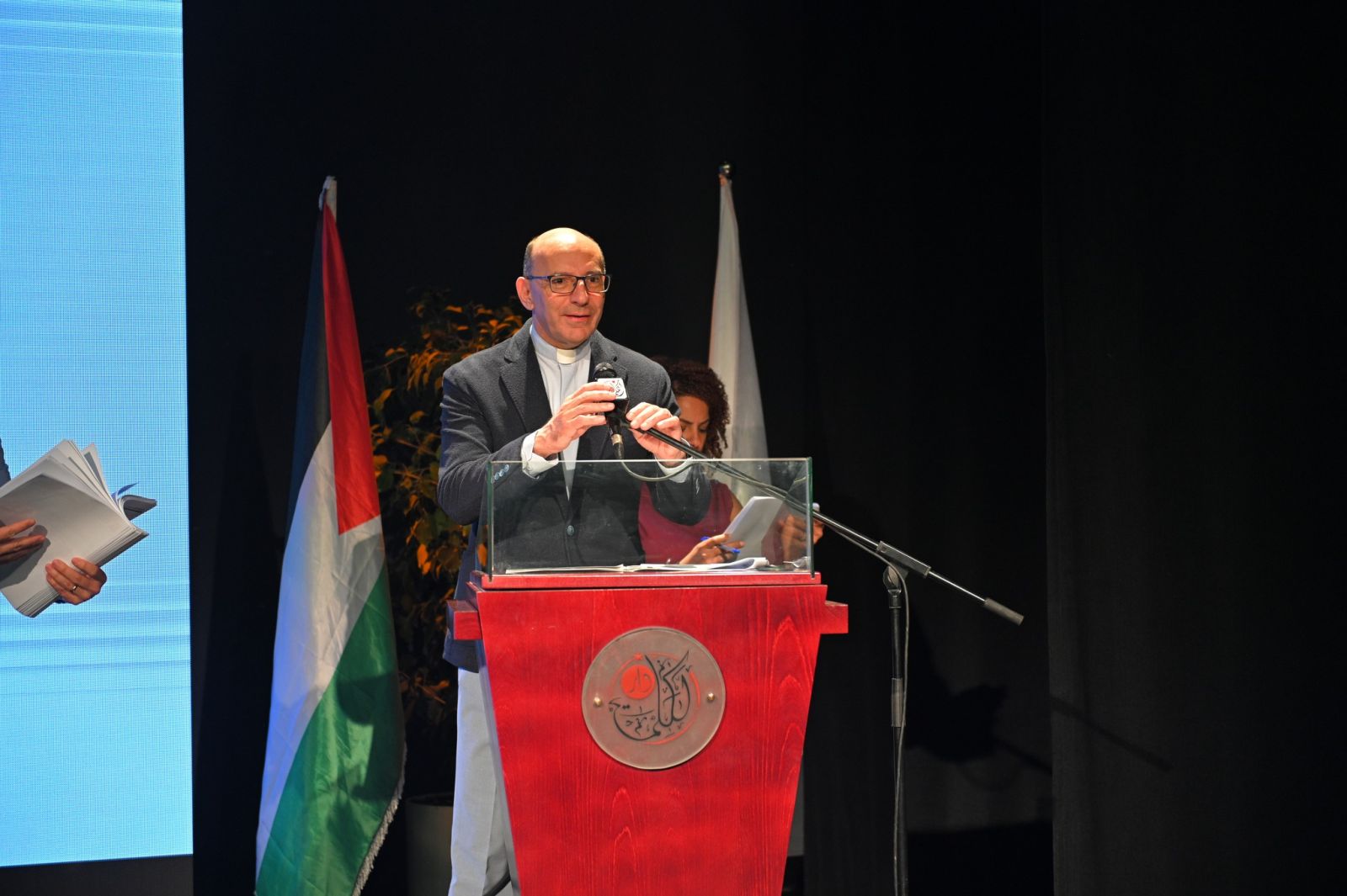 واختتم كلمته بشكر لجنة المنح في الجامعة على جهودهم، وتضم كلًا من أ. منار إدريس عميد شؤون الطلبة، أ. ايهاب مصلح عميد القبول والتسجيل، أ. إيليا قيسية المدير المالي.
