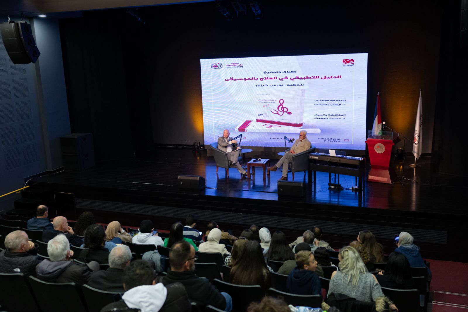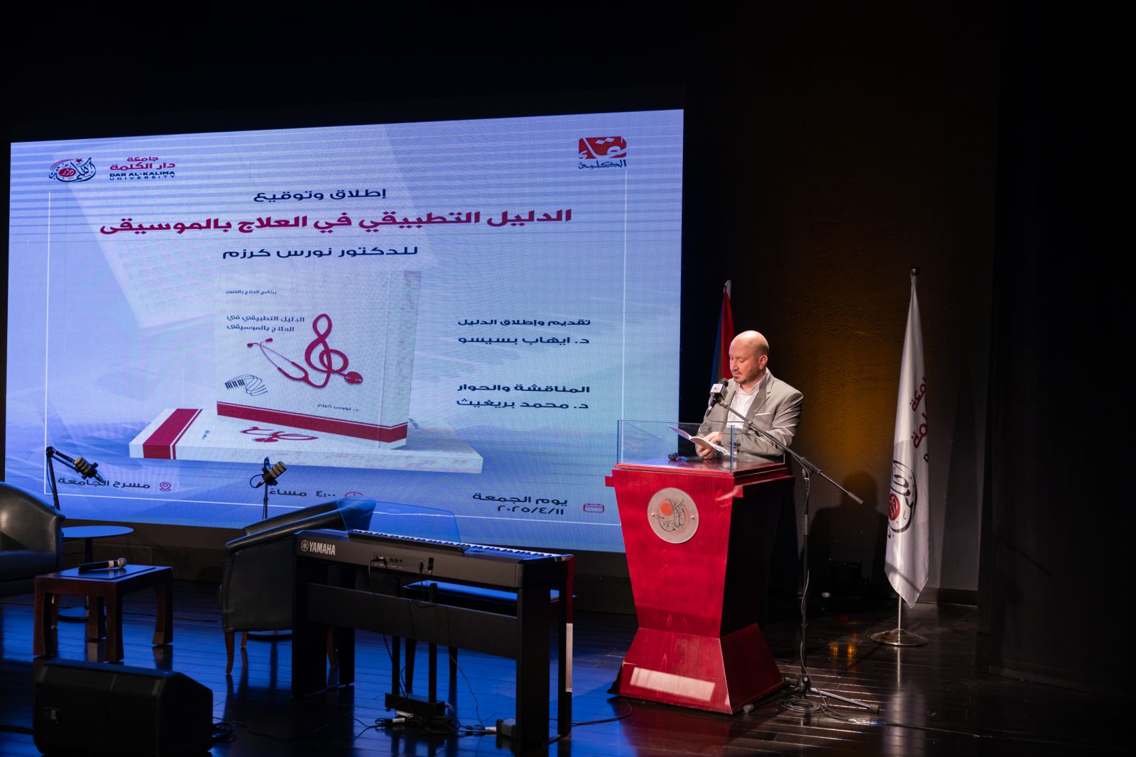أطلقت منشورات جامعة دار الكلمة التابعة لجامعة دار الكلمة، وضمن سلسلة ندوات لقاء الكلمة، أحدث إصداراتها الدليل التطبيقي في العلاج بالموسيقى للدكتور نورس كرزم، وذلك في مسرح جامعة دار الكلمة.
