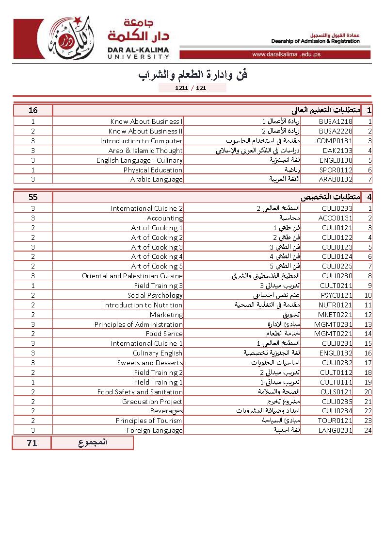 الدبلوم المتوسط في فن وإدارة الطعام والشراب