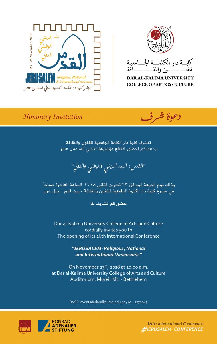 Our 16th International Conference :"Jerusalem: Religious, National, and International Dimensions"