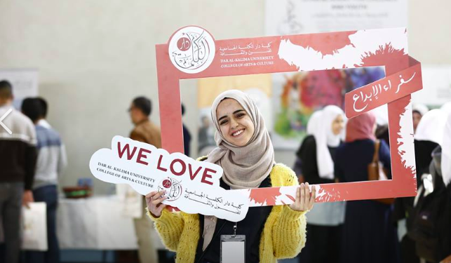 Dar al-Kalima University College of Arts and Culture is the first of its kind in Palestine, offering students the opportunity to focus on performing and visual arts, Palestinian heritage, and design. The University College offers degrees in interior design, cultural and sustainable tourism, performing arts, graphic design, film production, glass and ceramics, culinary arts, and hospitality. Dar al-Kalima works to develop the skills and talents of its students, in order that they may be ambassadors of their country, their culture, and their civilization.