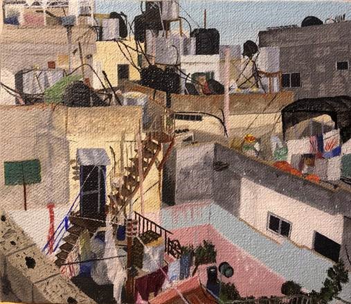 “Architecture is one of my favorite topics to paint about and to talk about,” she said. “Each rooftop or surface is different and says something about the history of Palestine.”