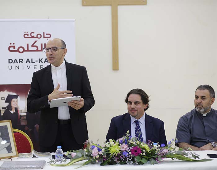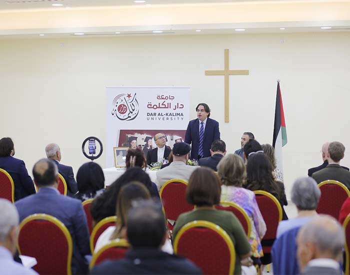 Professor Rev. Mitri Raheb, founder and president of Dar al-Kalima University, first opened the ceremony with a welcome speech, where he stated: