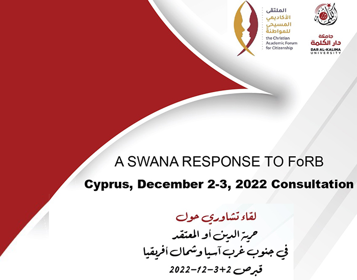 Dar al-Kalima University is organizing a Southwest Asian and North African (SWANA) consultation on FoRB (Freedom of Religion or Belief) with The Christian Academic Forum for Citizenship in the Arab World (CAFCAW). The consultation will take place in Limassol, Cyprus on December 2 and 3, 2022.