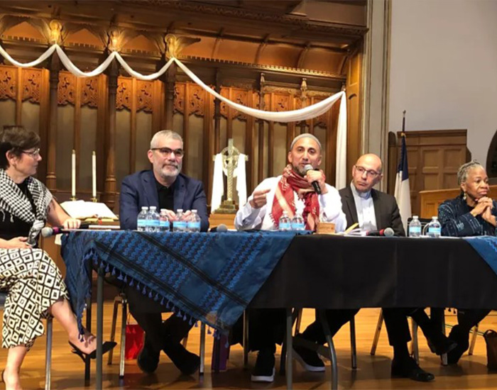 Raheb was joined on the multi-faith speakers’ panel at First Presbyterian Church by Rabbi Brant Rosen, who said zionism runs counter to Jewish values and described his Chicago congregation as anti-zionist; Rami Nashashibi, founder of the Inner-City Muslim Action Network, who spoke of how Jews, Muslims and Christians in the Holy Land lived in peace and friendship and celebrated each others’ holidays prior to Israel’s 1948 founding, and Iva Carruthers, a longtime Evanstonian and activist for African American rights. >> Read More