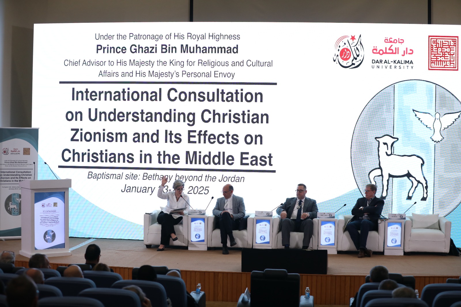 The conference titled "Understanding Christian Zionism and its Effects on Christians in the Middle East" took place at the Dead Sea in Jordan and the Baptism Site- Bethany Beyond the Jordan brought together experts, religious leaders, academics, and influencers from diverse backgrounds. The event aimed to deepen the understanding of Christian Zionism, its theological foundations, and the tangible effects it has on Christian communities across the Middle East. The conference was organized by Dar Al-Kalima University in Bethlehem, Palestine, in partnership with The Royal Aal al-Bayt Institute for Islamic Thought, under the Patronage of His Royal Highness Prince Ghazi bin Muhammad, Chief Advisor to His Majesty for Religious and Cultural Affairs and the Personal Envoy, and under the auspices of local churches. The conference attracted over 60 participants from 17 countries to discuss and partake in this vital topic.