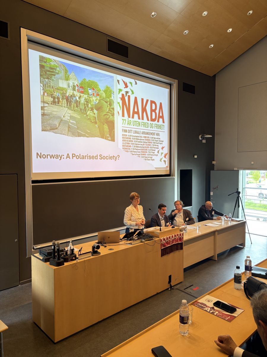 The second day of the conference, May 28, began with His Excellency Dr. Ramzi Khoury, who offered remarks that reiterated the importance of the Palestinian struggle for rights and dignity. The first panel discussed how Israel and Palestine is tackled in the Nordic countries, firstly by emphasizing the critical need for humanitarian aid to Gaza. Ambassador Prof. Dr. Manuel Hassassian responded by elaborating how Palestinians deserve political sovereignty and equality, stating firmly that Palestinians will never surrender to occupation. This was followed by an insightful presentation from Berit Hagen Agøy, who offered an overview of Norwegian parliamentary politics and addressing the positions of various parties, such as the Labour Party, the Christian Democrats, the Progress Party, and the Conservatives on issues related to Palestine and Israel. Her presentation aided the conversation around political-theological alignments in Norway.